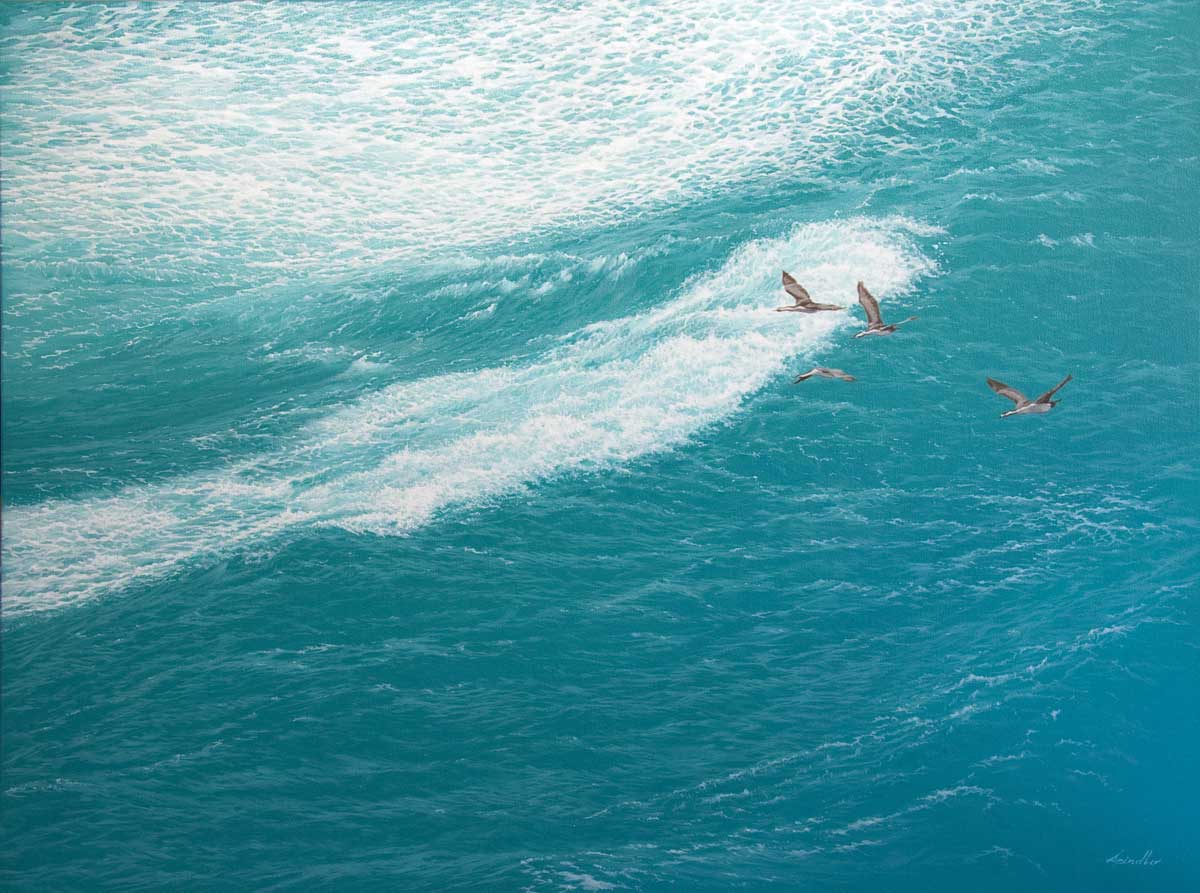 I chose to depict a number of them from a raised viewpoint, rather than at beach level. Losing the horizon, focussed attention on the birds and produced a simple clean design.