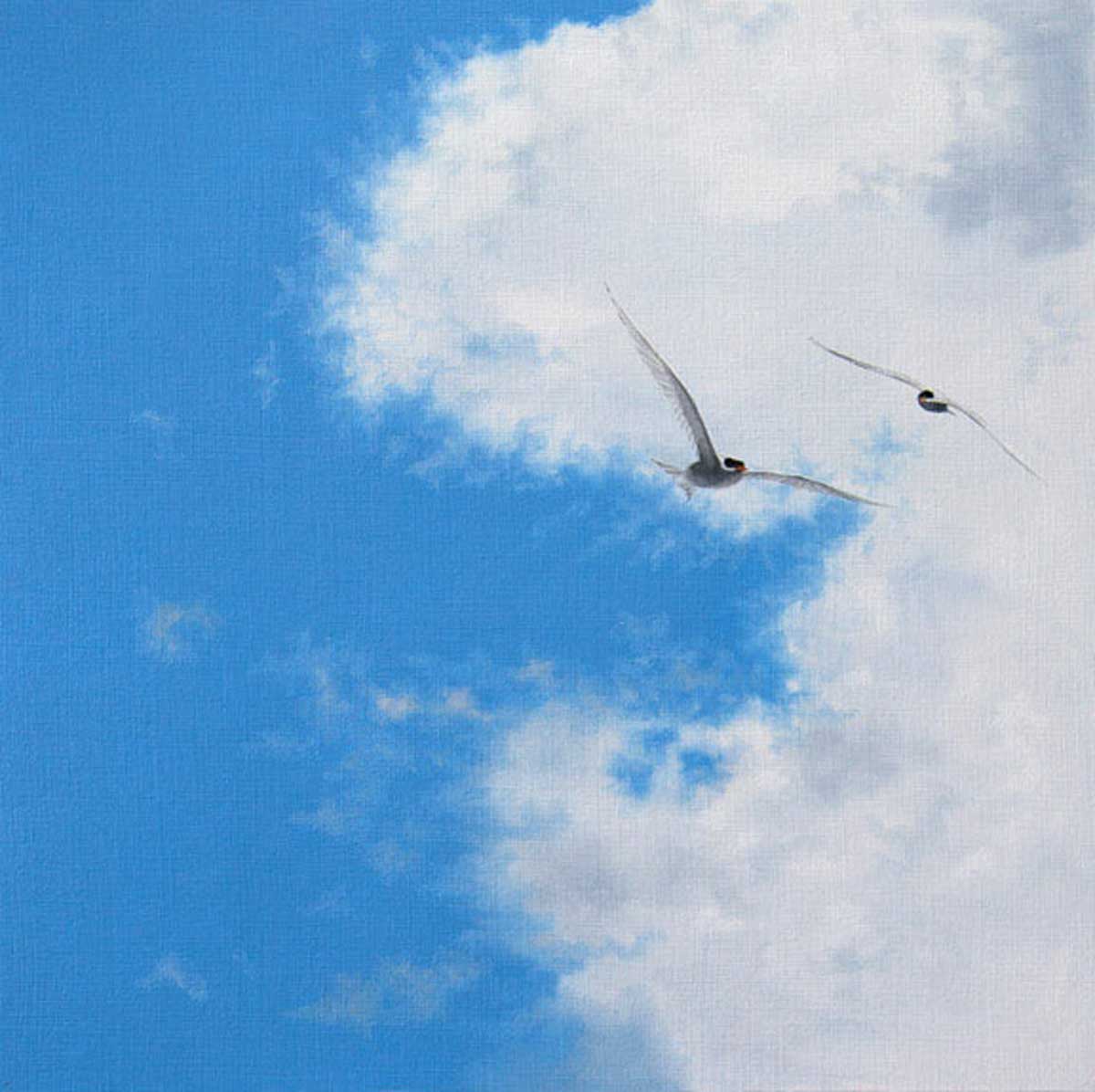 Two Terns, Size 10x10in Framed in White, $650.00 (NZD)